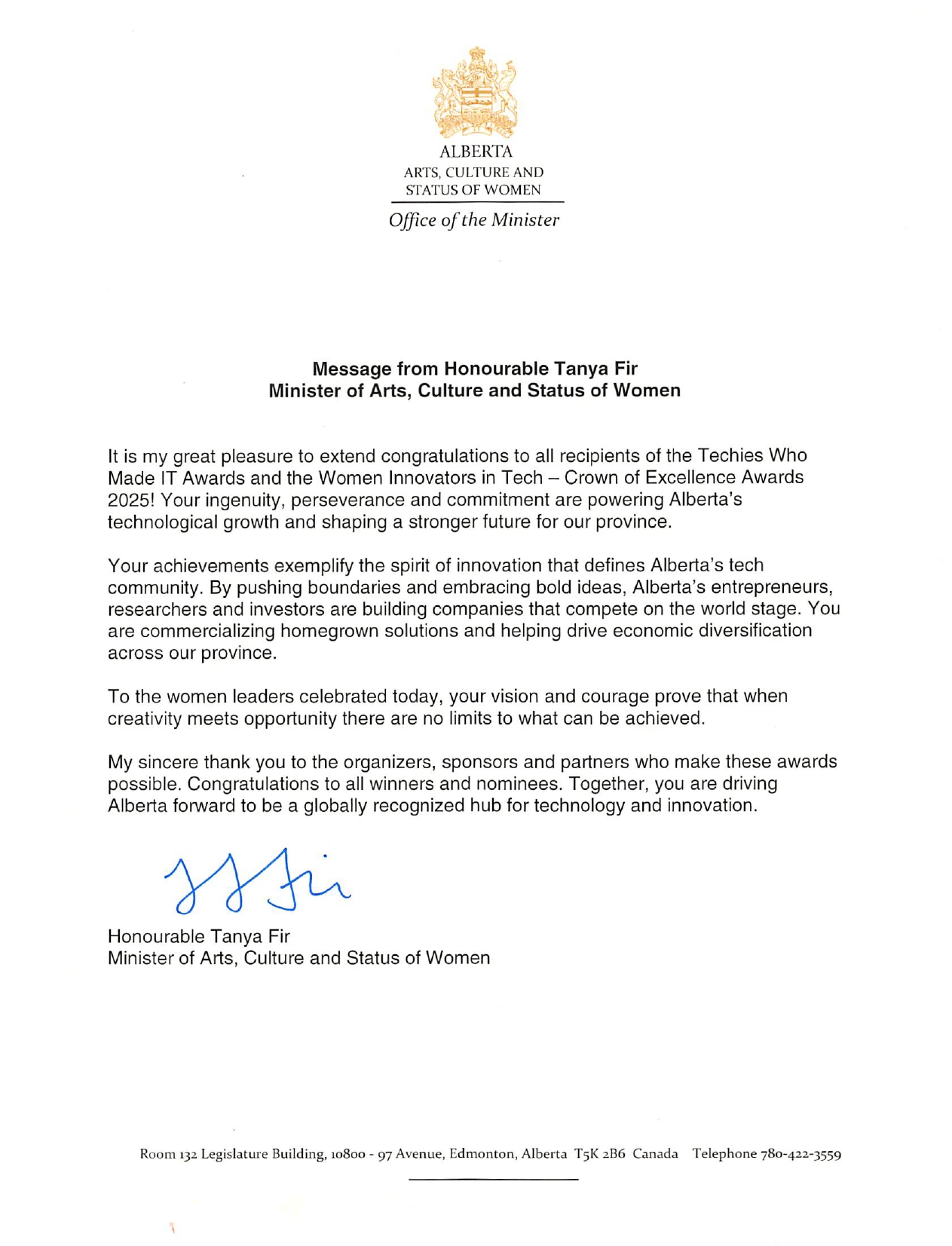 Honourable Tanya FIR